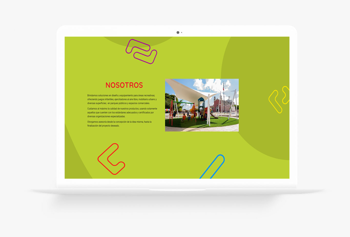 Brindamos soluciones en diseño y equipamiento para áreas recreativas; ofreciendo juegos infantiles, ejercitadores al aíre libre, mobiliario urbano y diversas superficies; en parques públicos y espacios comerciales.
